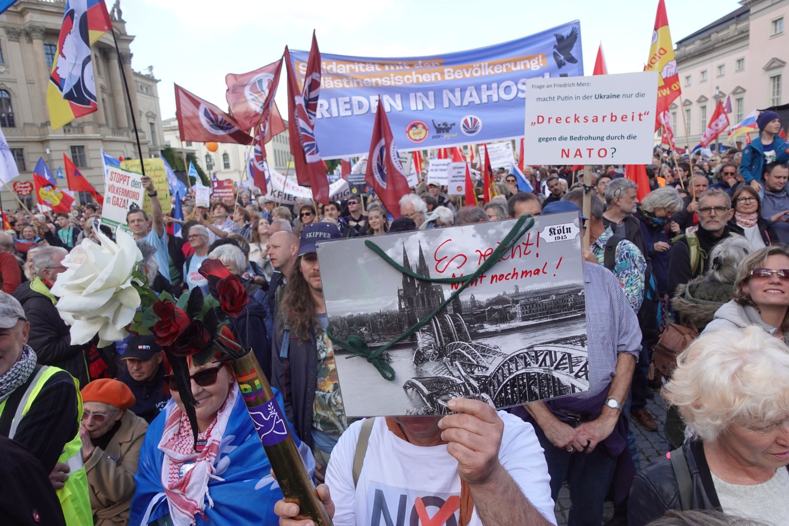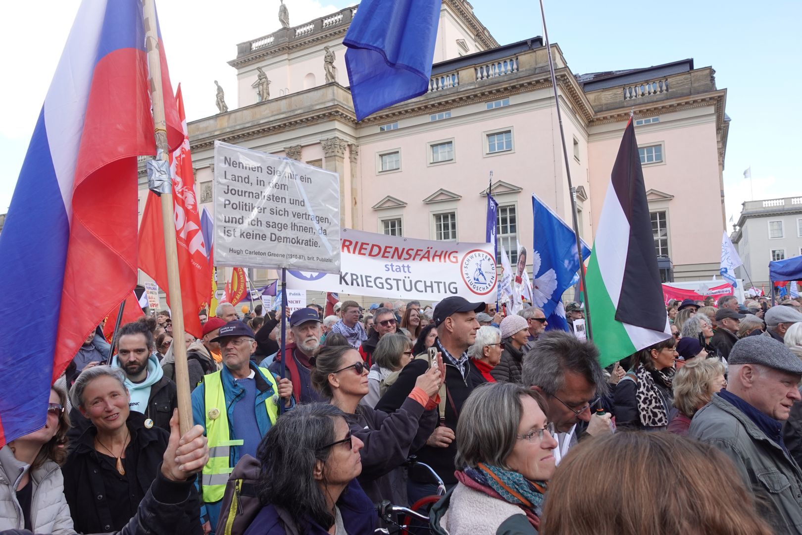 20.000 Menschen in Berlin und 15.000 in Stuttgart haben heute ihr Bekenntnis für Frieden und Diplomatie, gegen Krieg und Hochrüstung auf die Straße getragen. Der Vorbereitungskreis „Nie wieder kriegstüchtig! Stehen wir auf für Frieden“ vereinte erfolgreich eine gewachsene soziale und politische Opposition gegen die Hochrüstungspläne und die Verschuldungspolitik der Bundesregierung. Eine Widerstandsbewegung, die sich gegen den sozialen Kahlschlag wehrt, der mit der hochgefährlichen Aufrüstung der Bundesregierung einhergeht, weil das Geld für marode Schulen, den Öffentlichen Nahverkehr, das Gesundheitswesen, die Kultur sowie Klimaschutz und globale Entwicklung gebraucht wird.